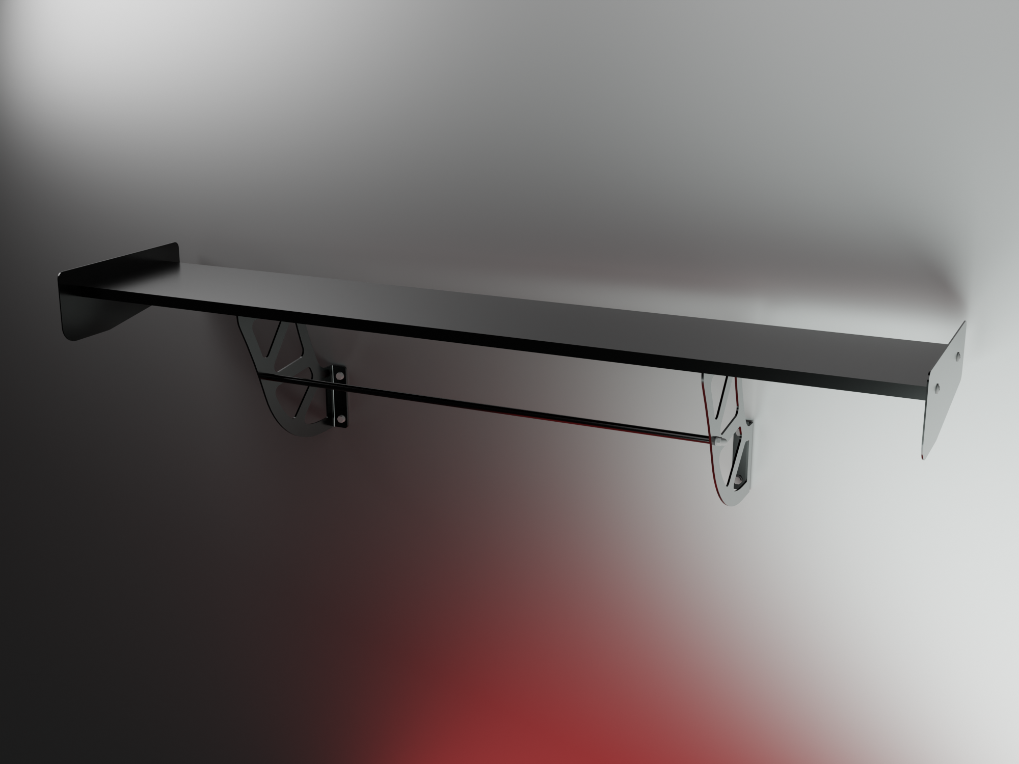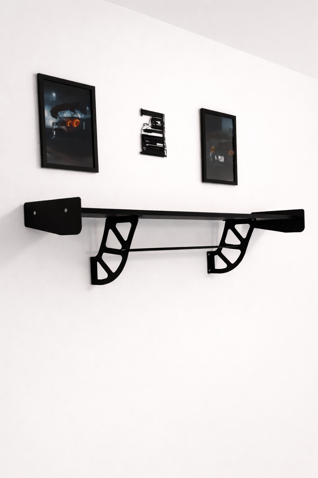 Verleihen Sie Ihrem Raum das gewisse Etwas mit diesem einzigartigen Wandregal im Design eines sportlichen Heckspoilers! Inspiriert von den aerodynamischen Formen eines Sportwagens, kombiniert dieses Regal außergewöhnliche Optik mit funktionaler Robustheit.