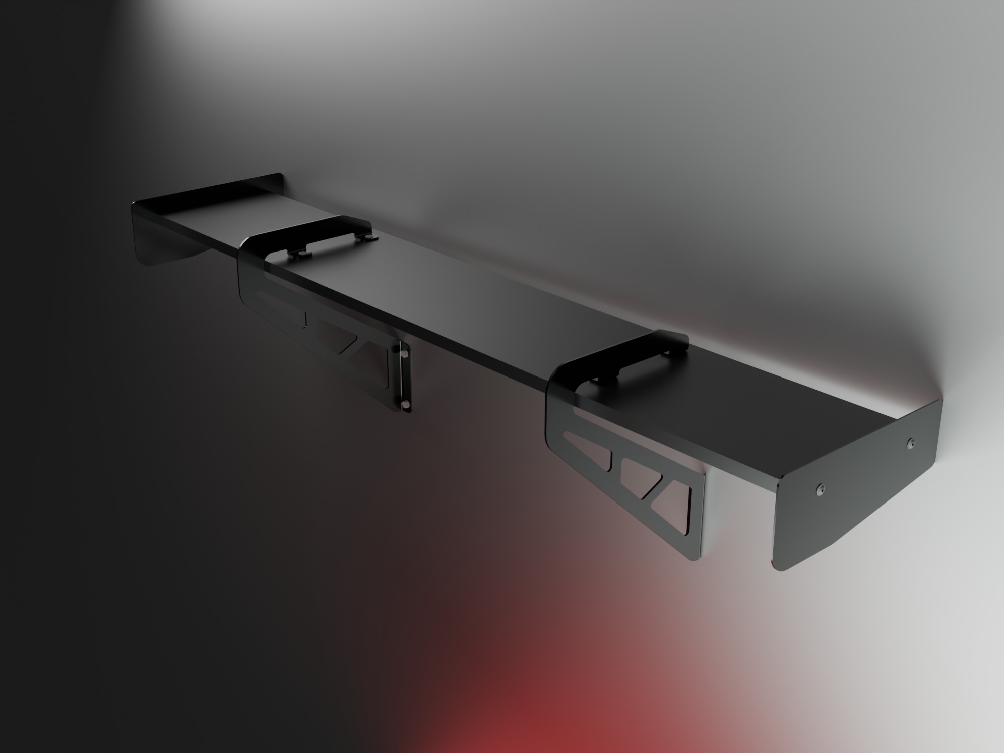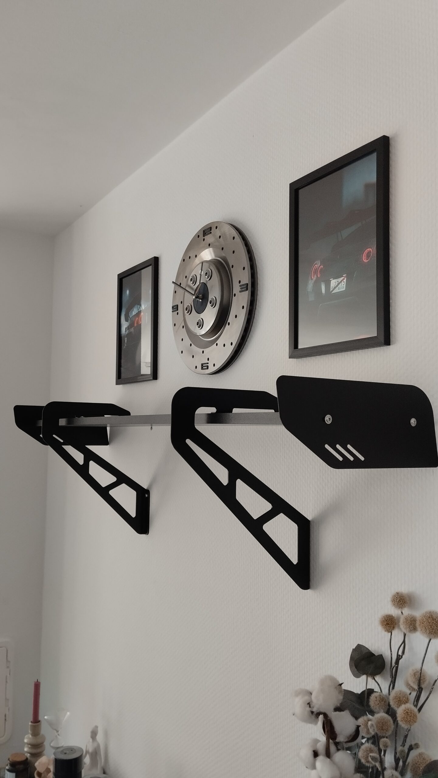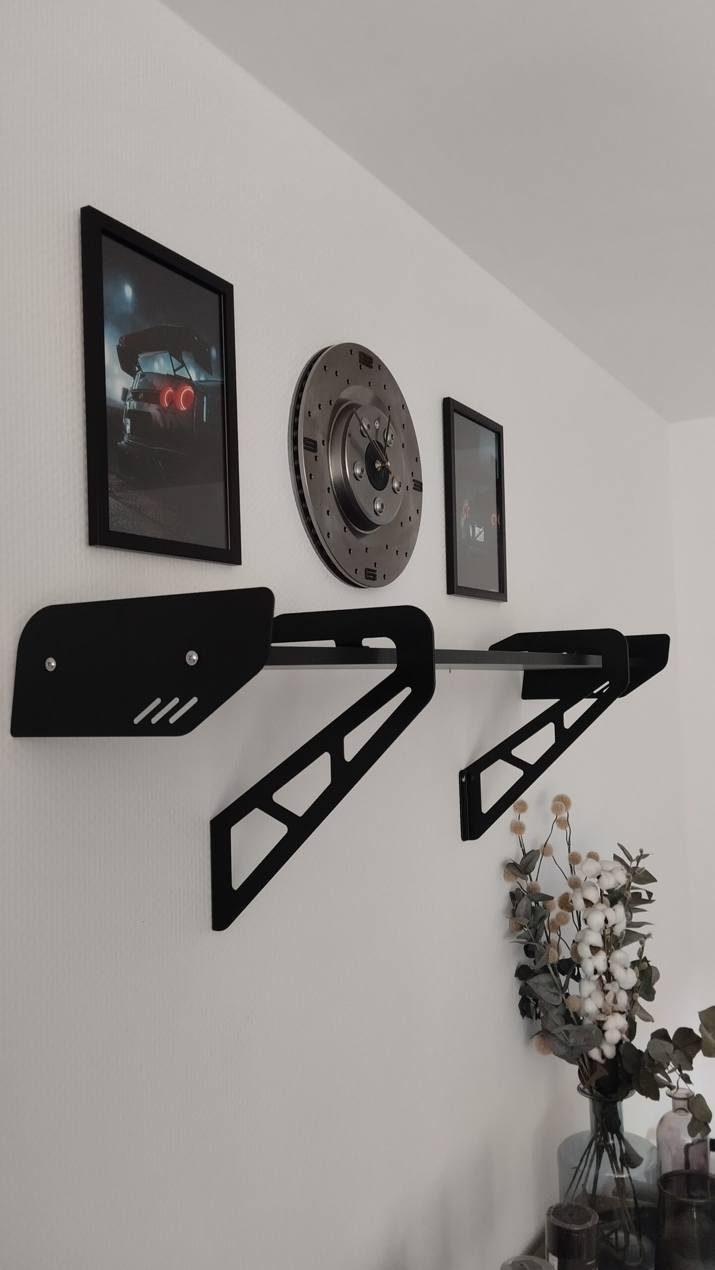 Verleihen Sie Ihrem Raum das gewisse Etwas mit diesem einzigartigen Wandregal im Design eines sportlichen Heckspoilers! Inspiriert von den aerodynamischen Formen eines Sportwagens, kombiniert dieses Regal außergewöhnliche Optik mit funktionaler Robustheit.
