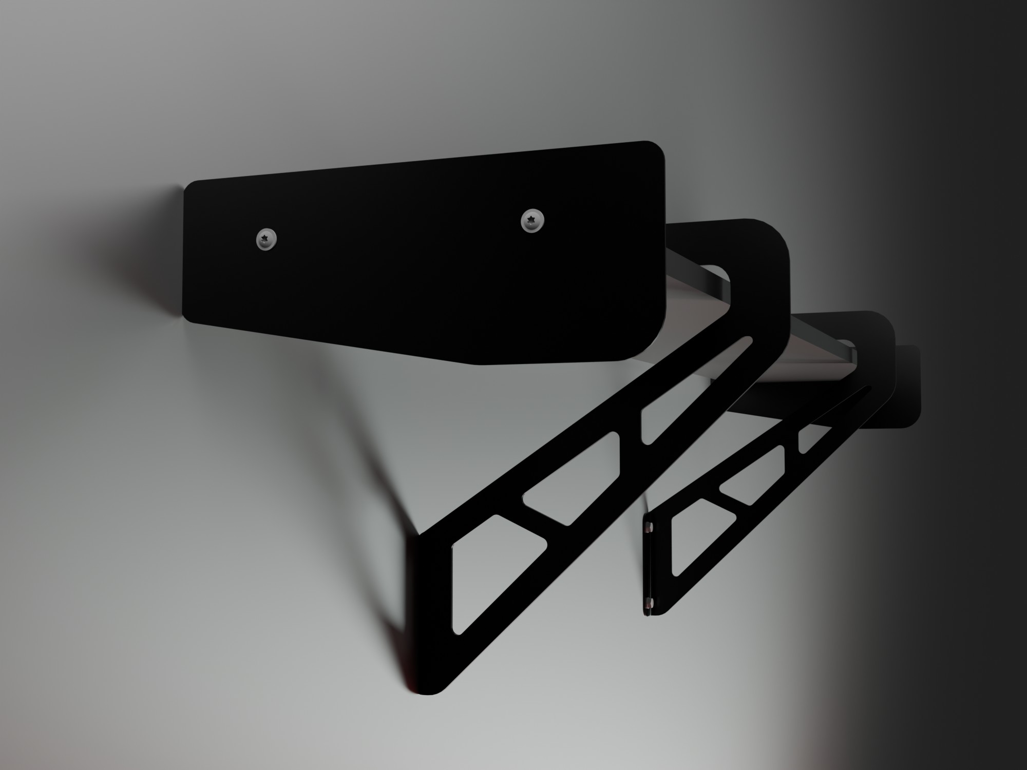 Dieses Spoiler-Regal aus Stahl ist das ideale Accessoire für jeden Autoliebhaber. Mit seinem matt schwarz gepulverten Finish verleiht es deinem Raum einen modernen, sportlichen Look. Das Wandregal ist inspiriert vom Design eines sportlichen Heckspoilers.
