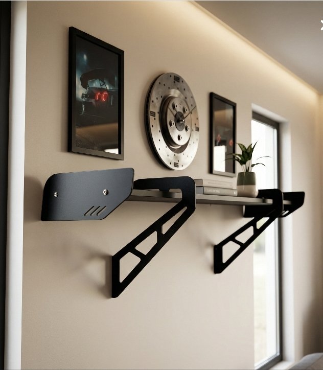 Verleihen Sie Ihrem Raum das gewisse Etwas mit diesem einzigartigen Wandregal im Design eines sportlichen Heckspoilers! Inspiriert von den aerodynamischen Formen eines Sportwagens, kombiniert dieses Regal außergewöhnliche Optik mit funktionaler Robustheit.
