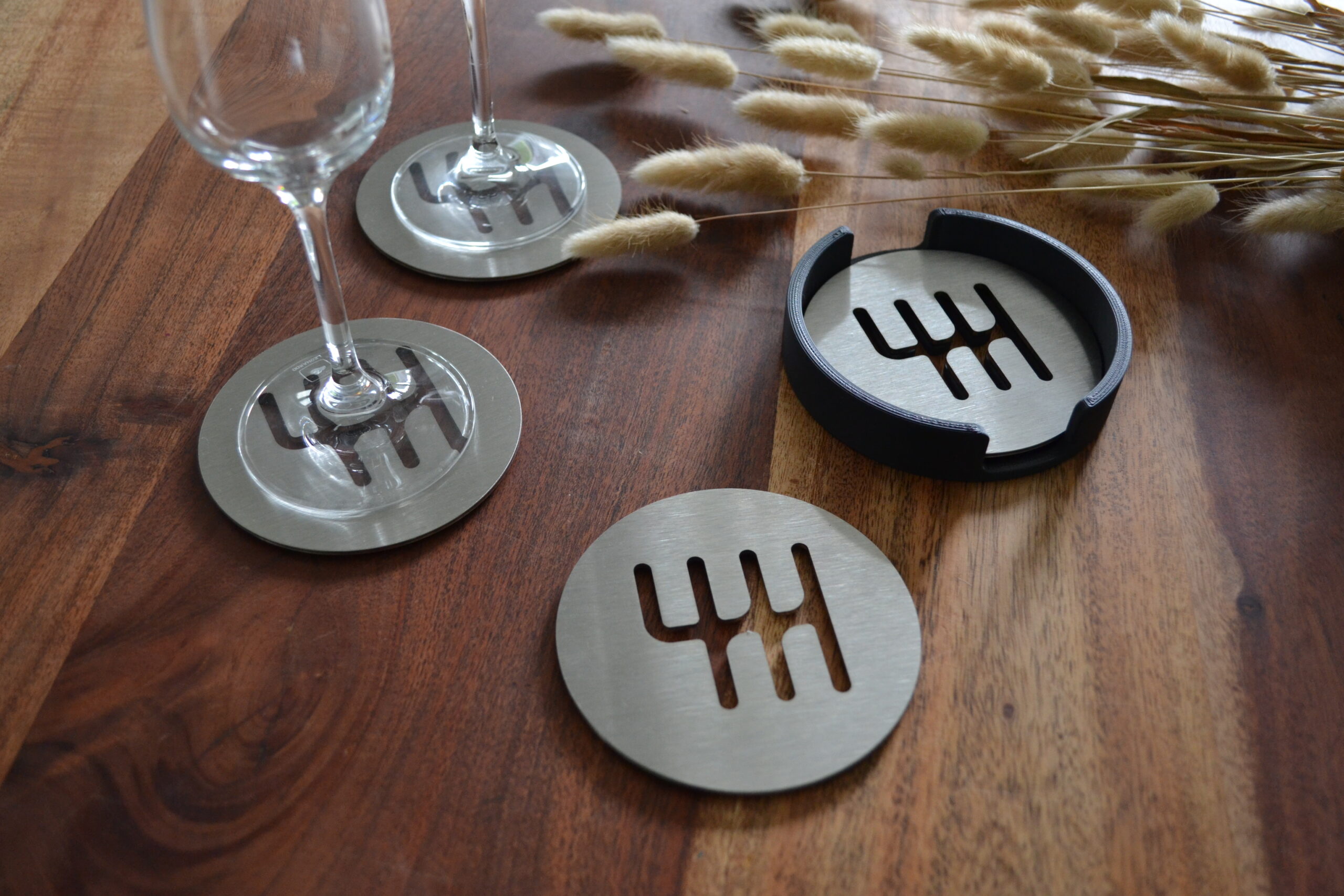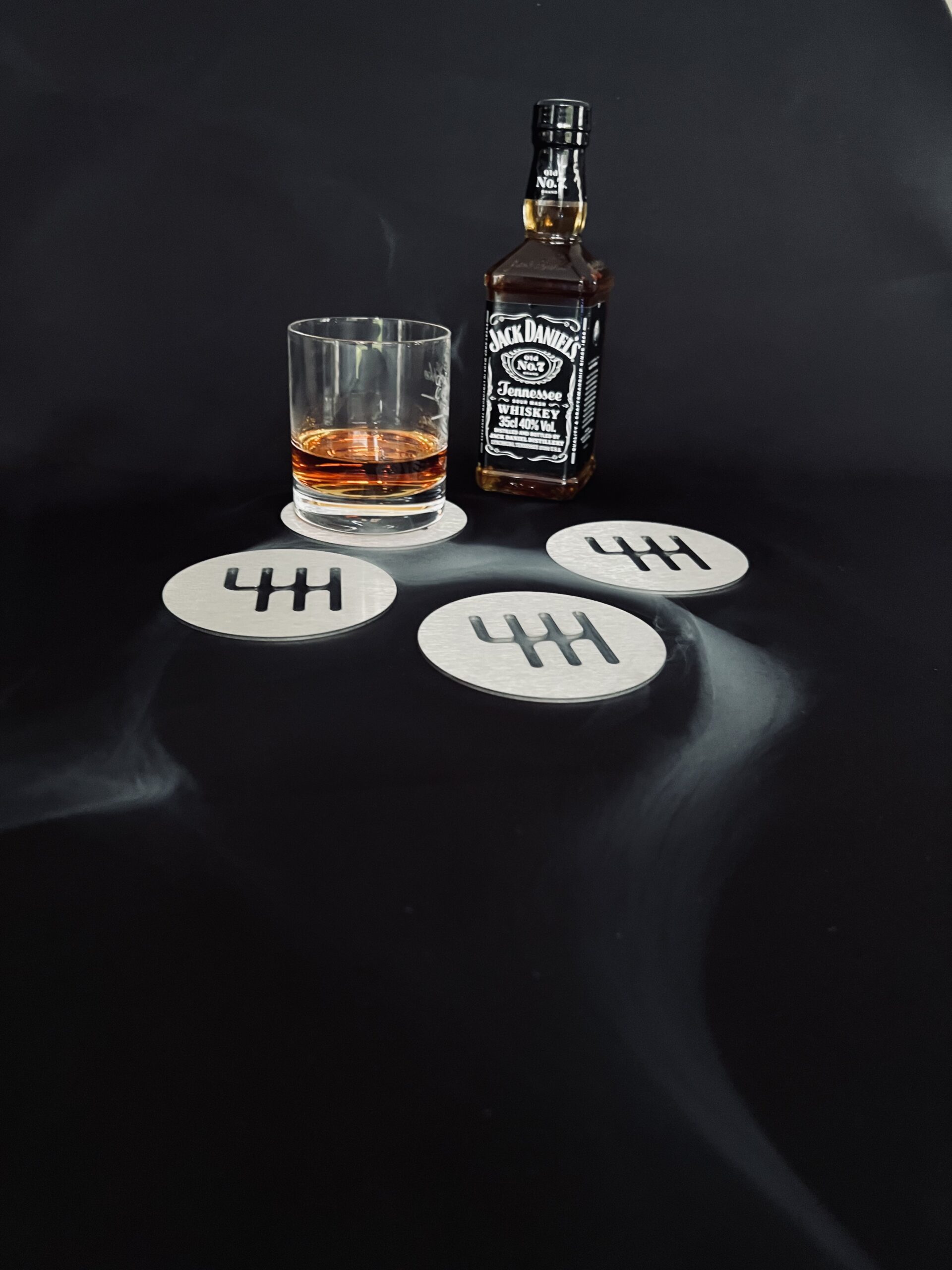 Edelstahl-Glasuntersetzer mit 6-Gang-Schaltsymbol