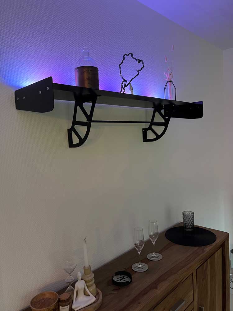 Setzen Sie auf ein Design, das Geschwindigkeit und Stil vereint – mit diesem Regal im Heckspoiler-Look holen Sie sich ein Stück Motorsport-Kultur direkt an Ihre Wand.